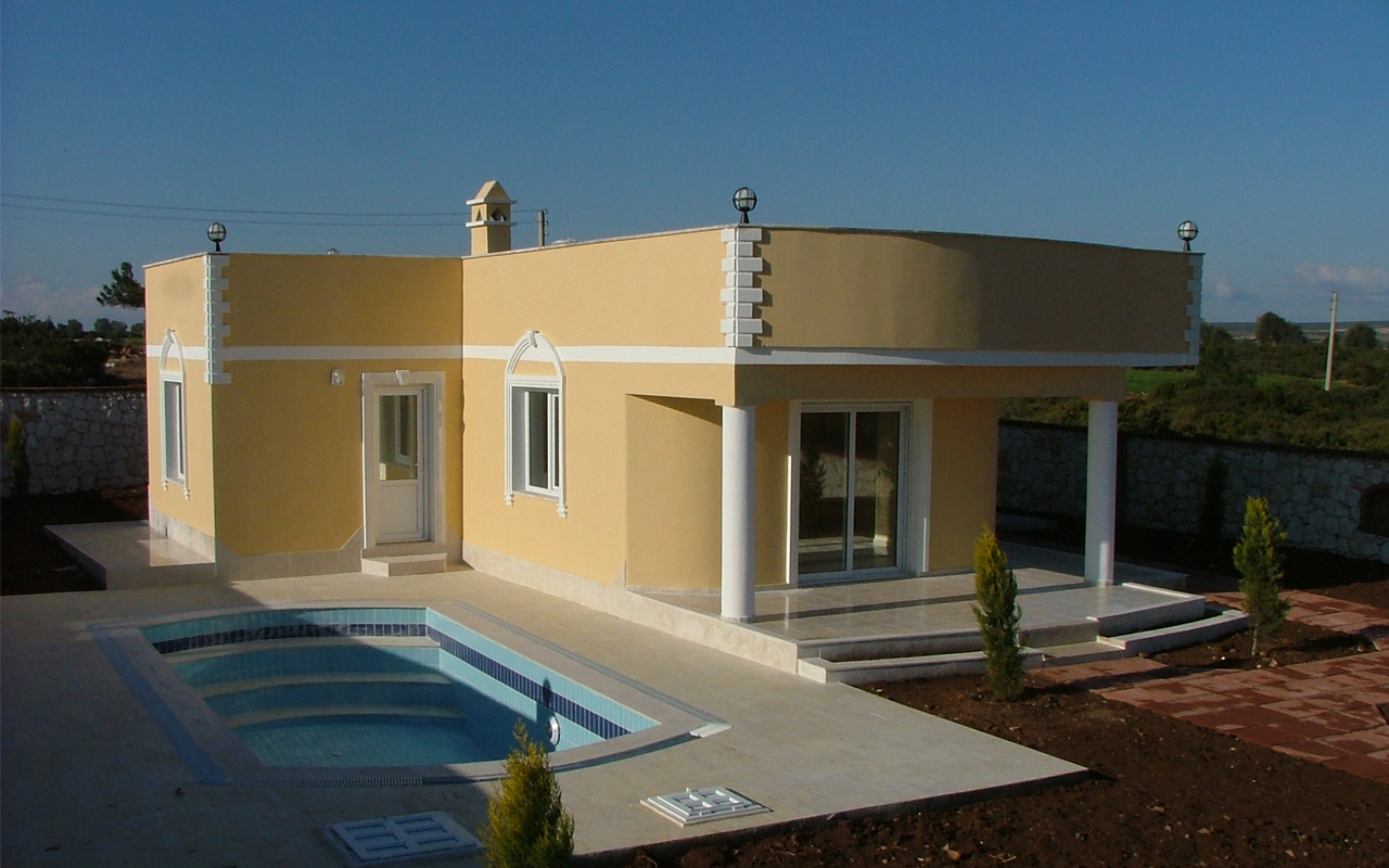Tek katlı müstakil villa olarak tasarlanmış projemiz 2 odalı veya 3 odalı opsiyonları ile sunulmuştur. 700 m² arsa üzerine inşa edilmekte ve arsanın etrafı taş duvar ile çevrilmektedir.